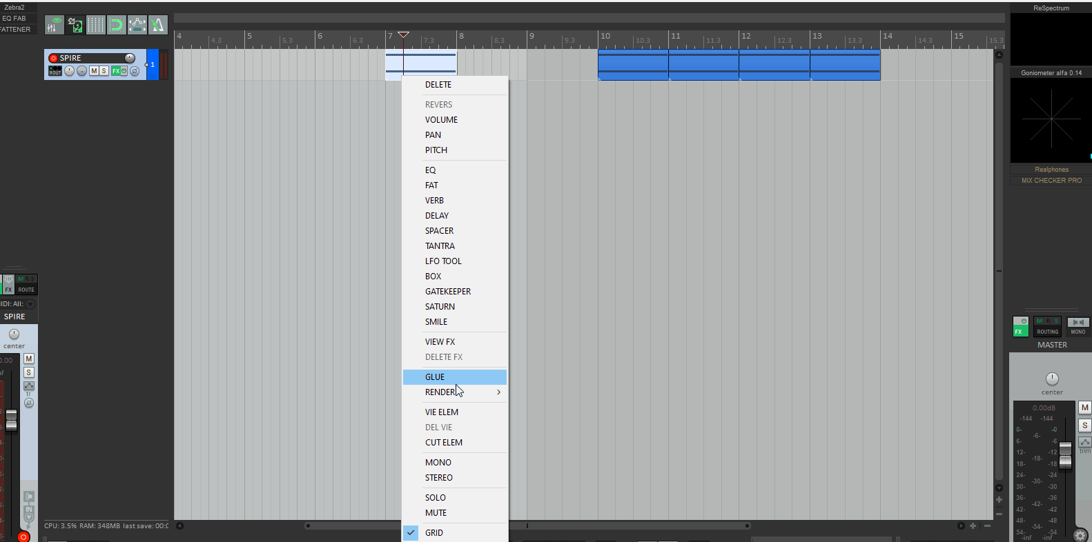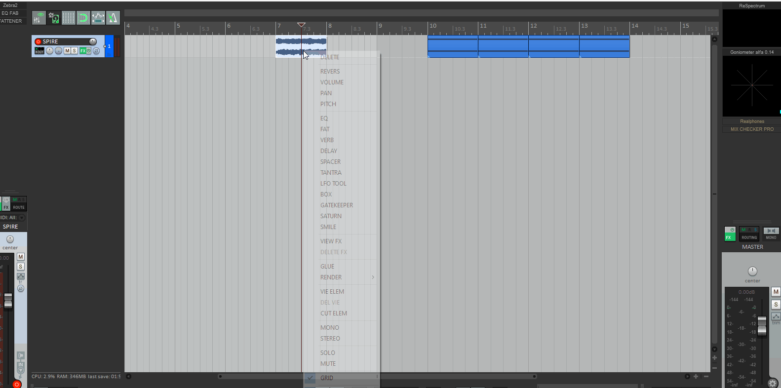 Ну и второе: у меня мультитрек контакта, на аудио треках висит плагин relay от Izotope (визуальное микширование)