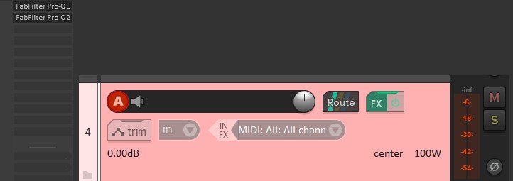 Скажем у меня на треке контакт с пару плагинов. Дорожка покрашена в желтый цвет.