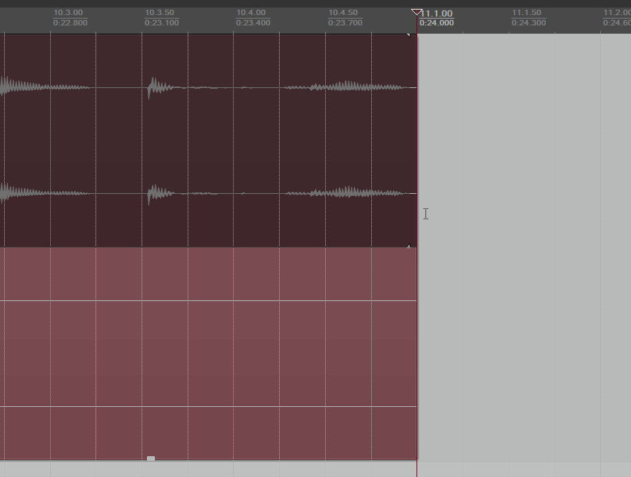 Вот Аудио-айтем основан на файле,а у файла есть края-начало и конец.Когда я добавляю компенсацию задержки,начало уходит за пределы айтема,но это приемлемо,так и должно быть.А вот конец уходит внутрь айтема,и получается пустой фрагмент по времени компенсации.