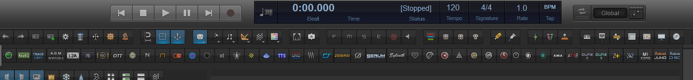 А вот когда я те же тулбары переключаю вверху - это Script: Archie_Var; Popup menu(n).lua. Этот скрипт позволяет создать любую менюшку, в нём у меня накиданы экшены, открывающие вверху как раз разные тулбары. о них уже была речь выше. Когда я создал такую менюшку. я посадил её на кнопку в каждый тулбар, чтобы из любого можно было переключаться. При этом, если удерживать Ctrl, то при активизации скриптов из менюшки (Archie_Var; Popup menu(n).lua) менюшка не будет закрываться. Это если вкратце. Если уже покопаться самому, будет понятнее)))) Но если что - подскажу.