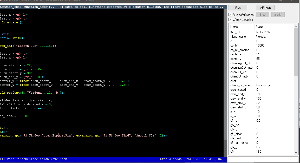 В похожем, от того же разработчика скрипте Smooth CCs, то же самое можно сделать? Заменил в ковычках название "MIDI Velocity/CC tool". на "Smooth CCs" выдаёт ошибку 'JS_Window_AttachTopmostPin' argument 1: expected void*