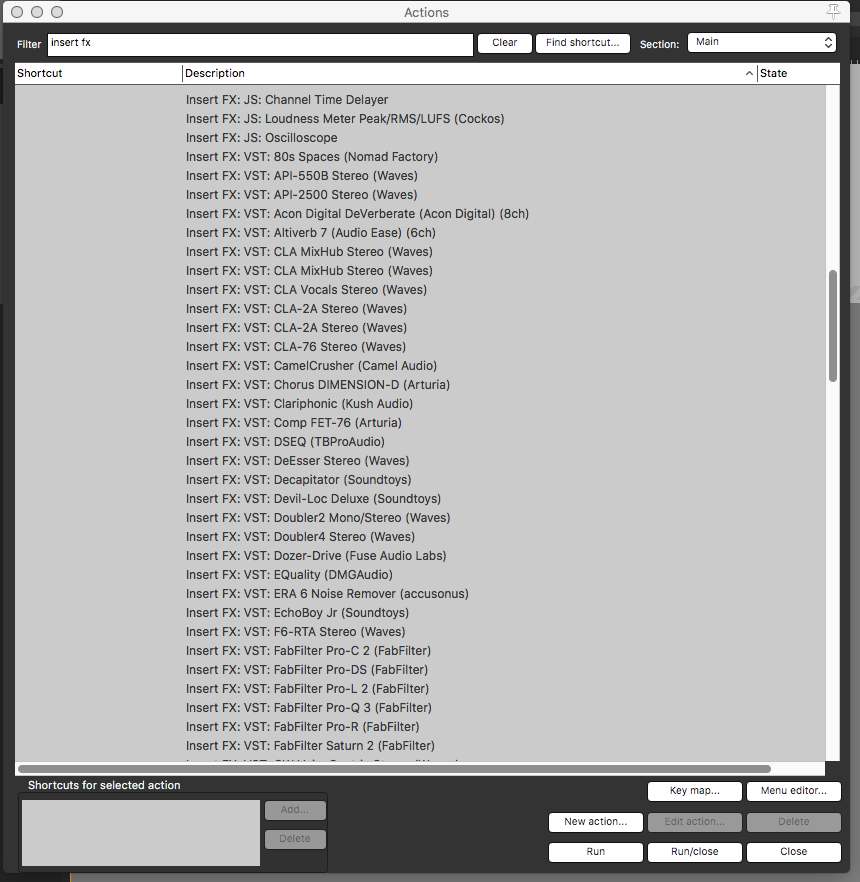 Подскажите, что добавить в кастом, чтобы окно вновь запущенного плагина открывалось? Есть вариант Create shortcut, но в (actions) его нет, и собрать цепочку действий не получится. Вот используемый экшн для запуска vst.