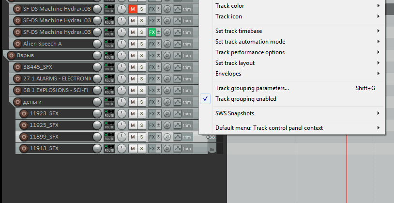 Далее я вспомнил про цикл экшн дабл трека , и начел его усовершенствовать , вставив ресет на паноаму и волюм . но сталкнулся с тем что не знаю как Удалить все плагины из трека который создается , да и как сделать фул ресет envelopes если они были на предыдущем треке ...........