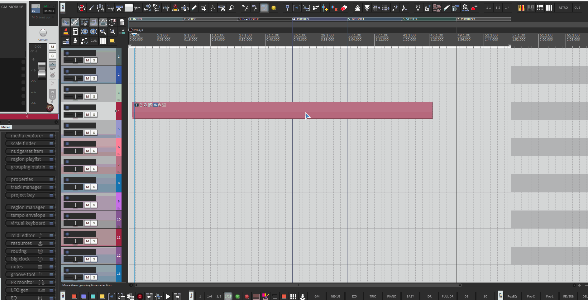 привет друзья, я новичок во всех отношениях, как на форуме так и касаемо Рипера. Решил, что для меня будет удобным вот такой простой экшн, по любому он уже где то встречался, есть небольшая проблемка. Ноты не совсем отсекаются в тех местах где стоит указатель мыши. Как его допилить..или натыкайте пожалуйста носом уже в готовый экшн или скрипт