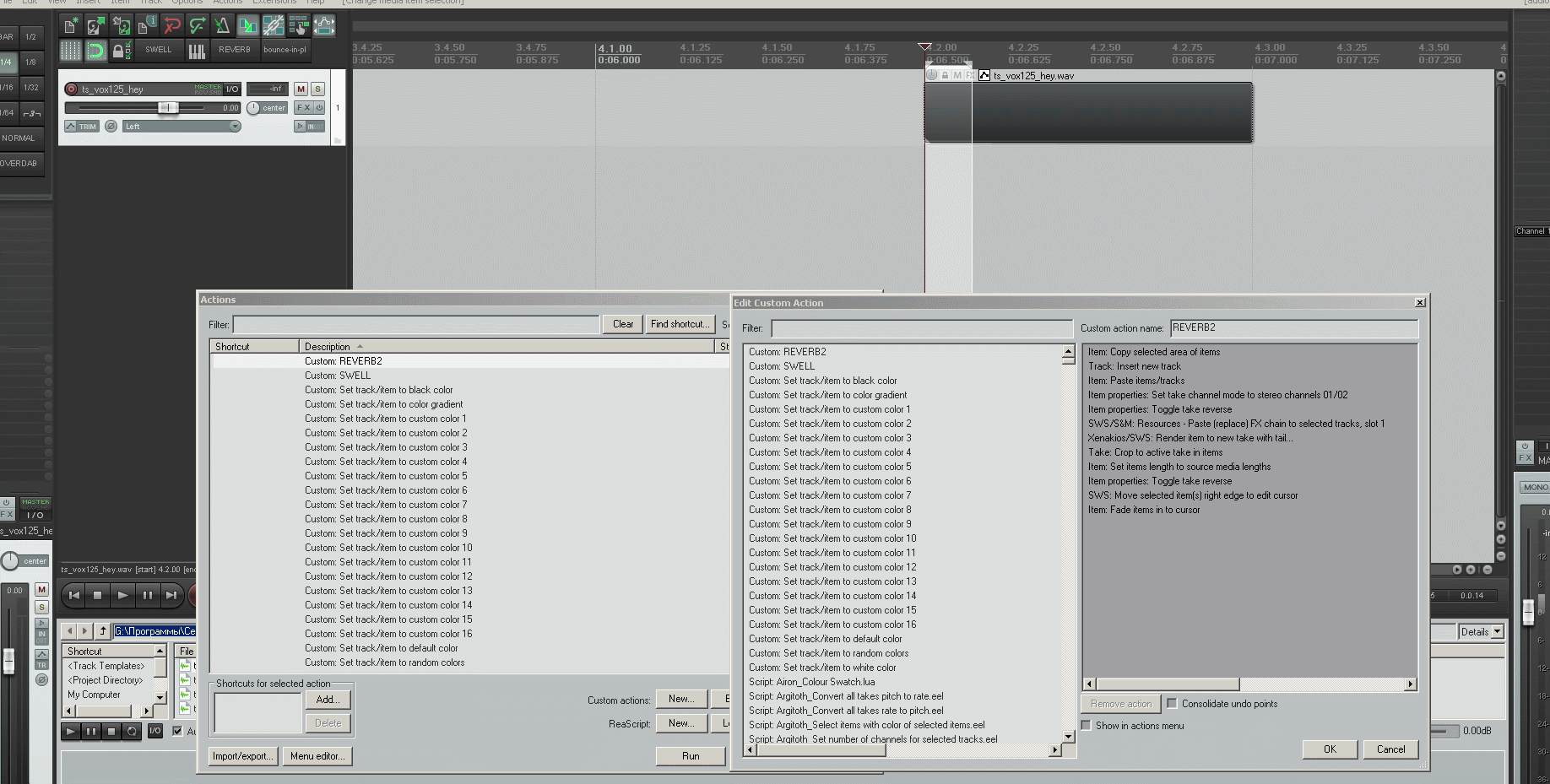 Помогите пожалуйста создать экшен из урока Алексея Разумова "Ближе к Реапер", с 01:03:33 минуте он показывает как он работае, называется Reverb,а в уроке "Трюки и ФИШКИ в EDM музыке 2" на 2:27:01 минуте,он показывает как такой эффект можно создать вручную,как по мне очень крутой эффект. Видео "Ближе к Реапер" и "Трюки и ФИШКИ в EDM музыке 2"