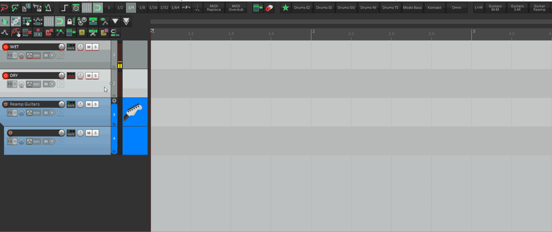 3. Выделить папку с названием Guitar Reamp. Select all tracks with name X (without input box).lua