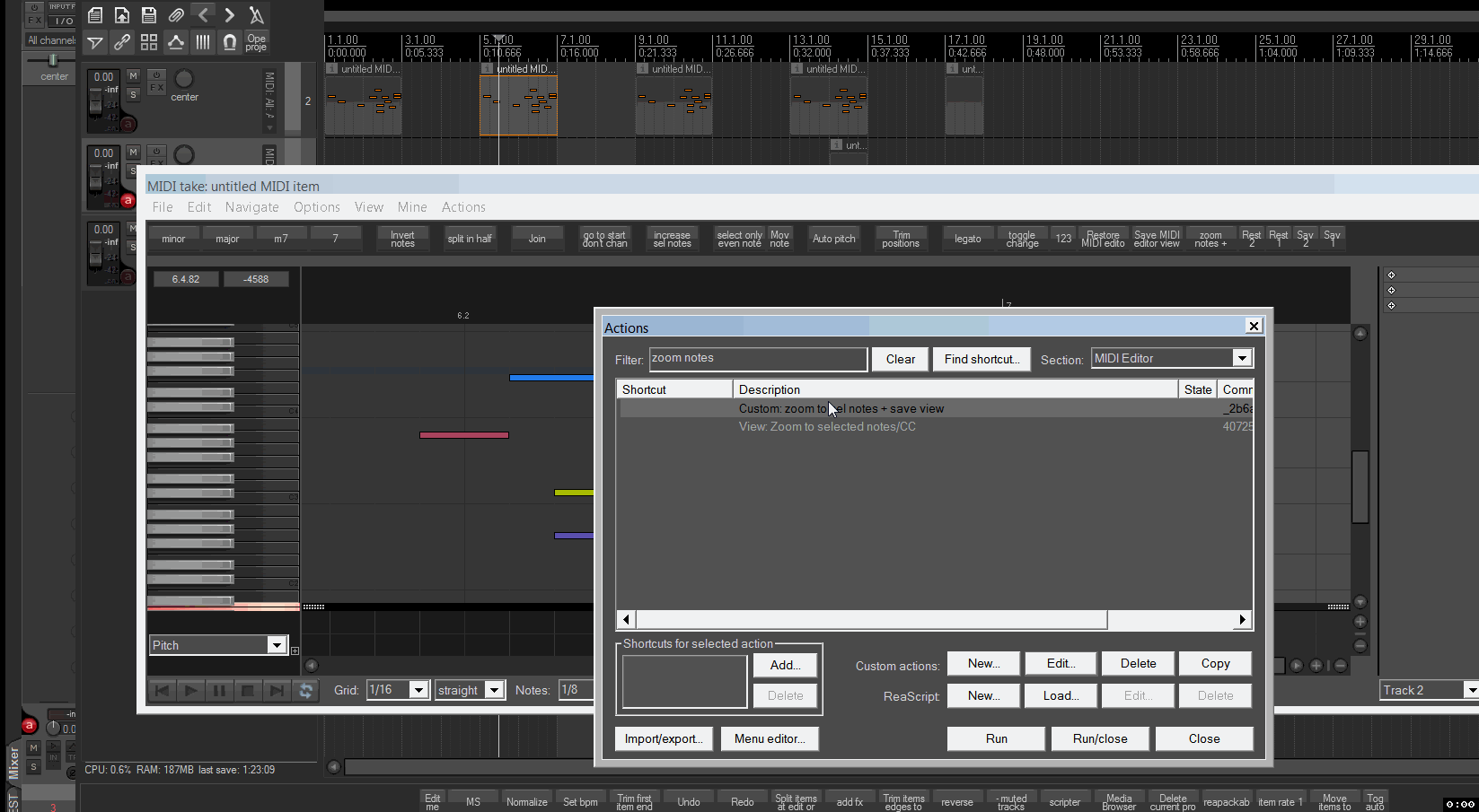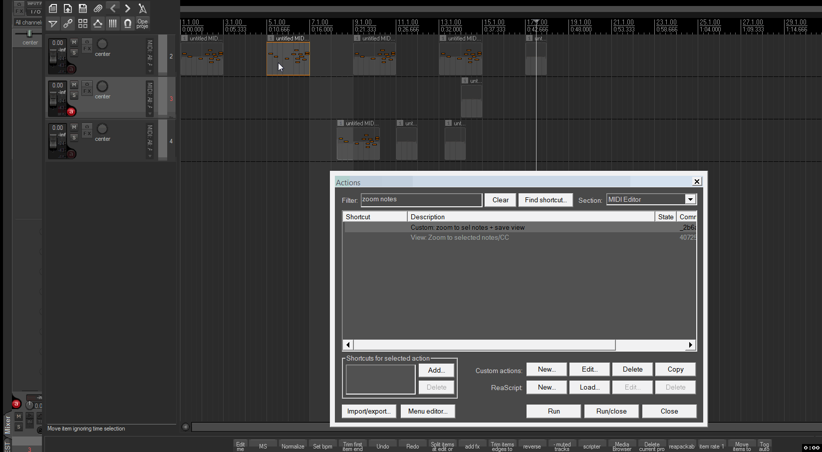 теперь это можно сделать кастомом:Вот надо тоже самое для миди-эдитора. Для него есть "view: zoom to selected notes", а вот чтобы обратно - не нашёл