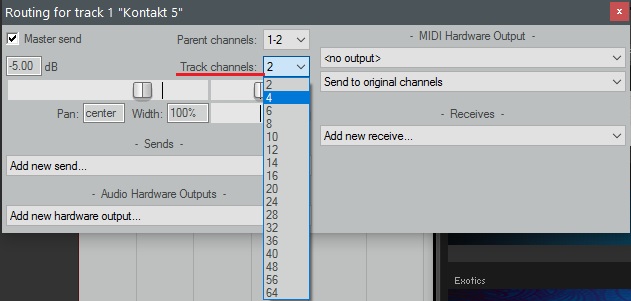Я читаю всё. Вопрос был в другом. Вижу что это глюк конкретно моего Рипера, так как у других всё с этим нормально. Причём проверка каналов? Я всё перепроверил уже и перепробовал. Банально же глюк отображения окна Plug-in pin connector только в связке с NI Kontakt (64 out).