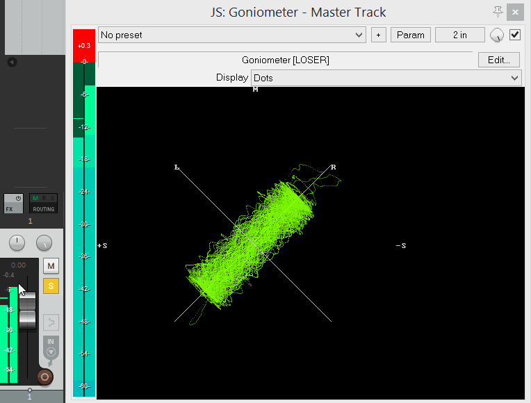 зы: сделал простейший эксперимент - два одинаковых трека в противофазе - на одном в стерео-режиме убрана ширина, на втором - уровень S-канала (использовал три встроенных JSFX). Вычитаются в -146 dBFS rms (считай что в ноль).