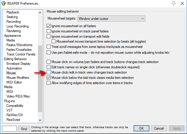 может, чего то не понял, но меня другой вопрос, похожий - как сделать так, чтобы при выделении айтема не выделялся трек? Помню, что уже обсуждалось, но сейчас уже не могу найти, а надо. В принципе, если выделять айтем проводя правой кнопкой мыши, то получается, но не всегда возможно это сделать, да всплывающие меню потом убирать надо.