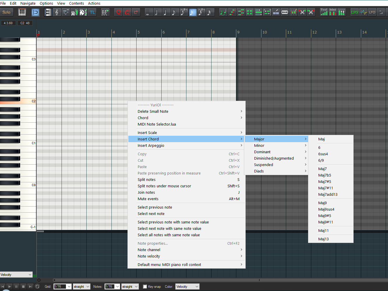 Подскажите есть ли в рипере возможность прикрутить в пиано ролл , что то похожее на добавление аккордов вместо одной нотки . Такая фишка существует в кубейс , очень автоматизирует процесс.