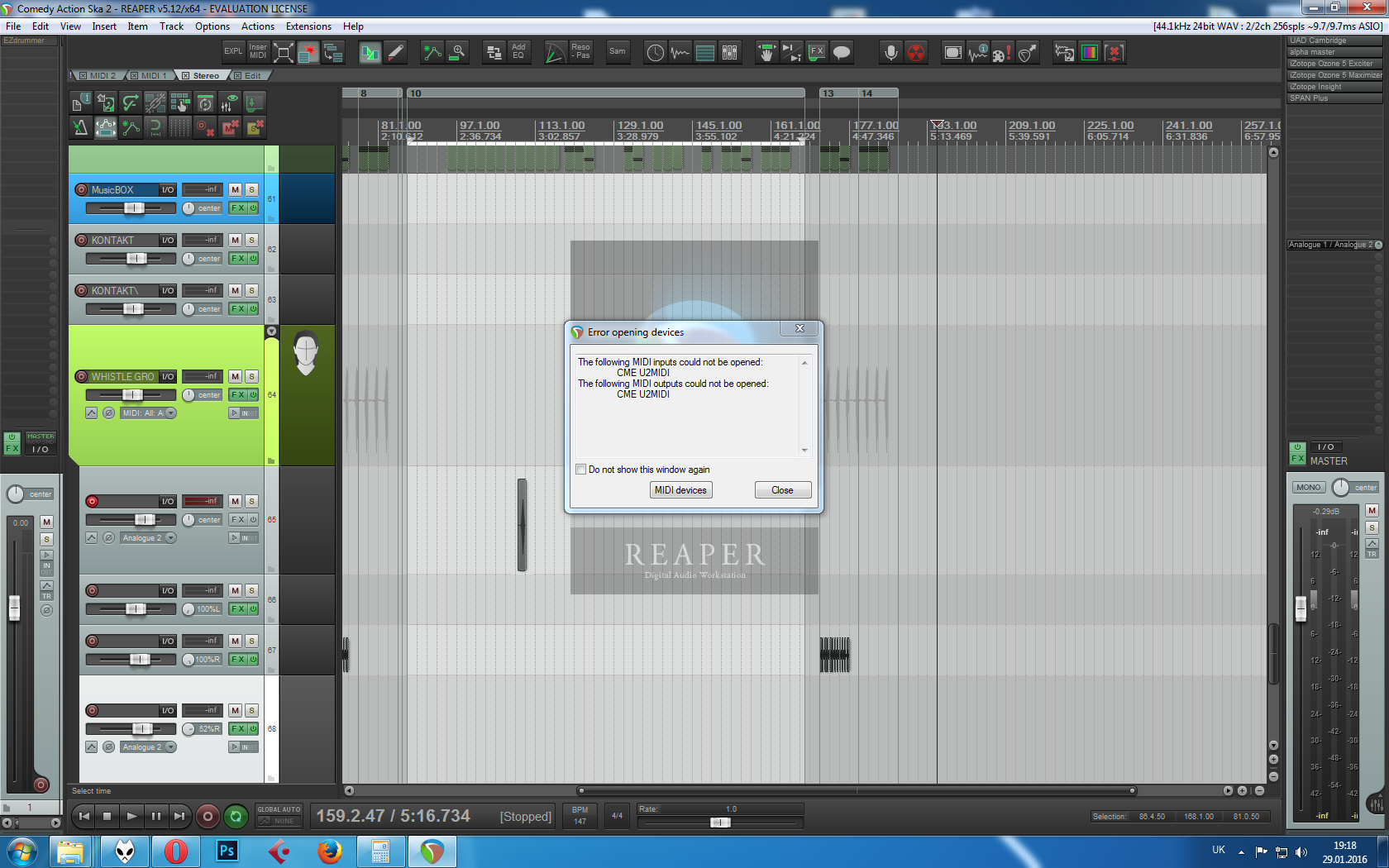 @lucky buston, И после нажатия на кнопку - Reset all MIDI devices - ваши CME U2MIDI по прежнему видны?