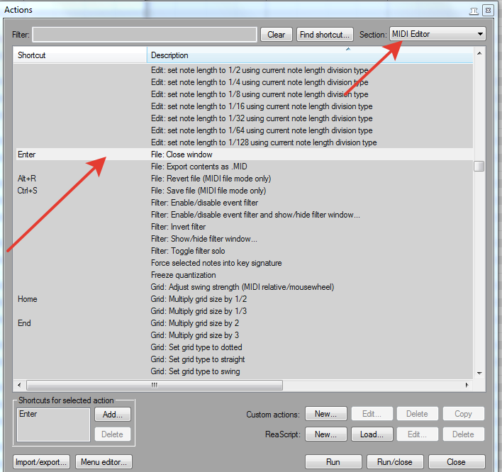 Народ, подскажите пожалуйста, возможно ли и как назначить одну клавишу-"например энтер", на открытие и закрытие миди эдитора?
