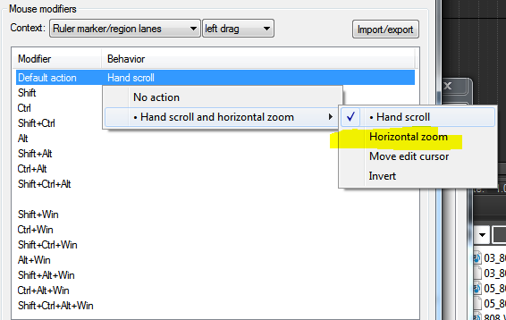 То есть как, сам по себе, при обычном наведении, без нажатия мыши? Если так, то скрипт, вероятно, запускается и работает в фоне - и его просто убрать оттуда. Вообще, не так сложно найти проблему - сохраните текущие настройки и пробуйте все, что угодно последовательно. Можно убирать-возвращать ini-файлы по одному из папки Рипера и смотреть на поведение, там почти все понятно, читается в блокноте. Сохраненные настройки(через экспорт, со ВСЕМИ галочками обязательно) - это надежная страховка.то есть в районе таймлайна при наведении курсора на регион -начинается зум