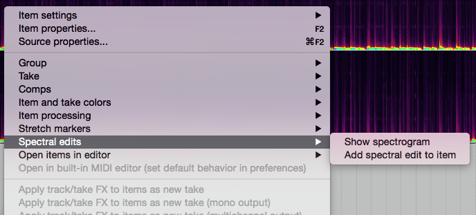подтверждаю слова SKlogic. У меня то же в 5.33 и 5.32 в контекстном меню и экшенах spectral edit отсутствует, пробовал 32 битные версии программы, по возможности проверю на 64.