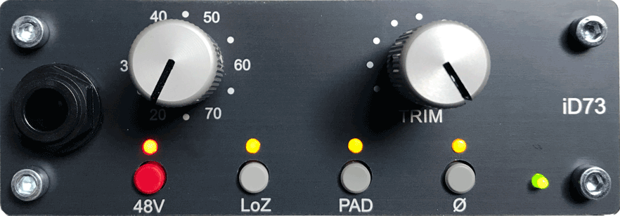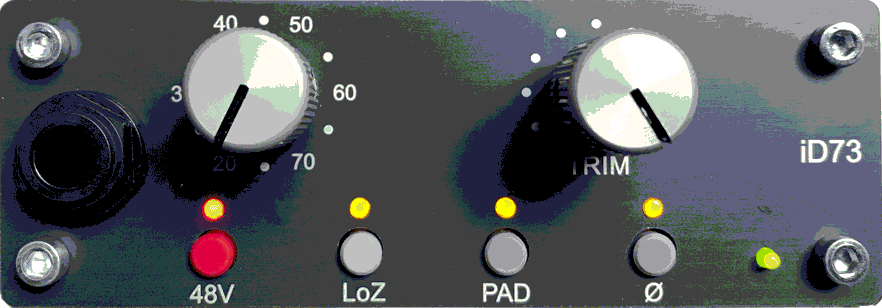 - Предусилитель iD73 (1073 без эквалайзера). Помимо микрофонного входа имеет высокоомный инструментальный вход на полевом транзисторе (FET).