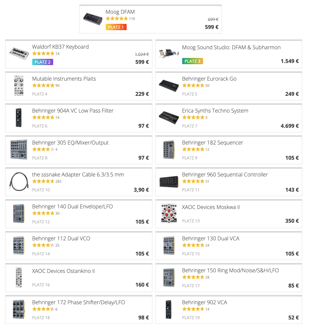 Что касается куска пирога. Вот топ продаж по модулярам и синтам с томана.