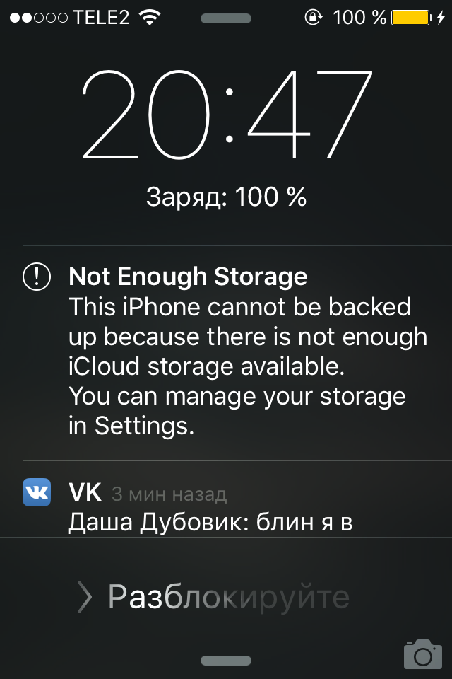 Кстати, после этого сооба появлялось оповещение с выбором "upgrade" и "cancel". Я всегда отменял, потому что не собирался апгрейдить айклауд и покупать там место. Но вот вчера решил попробовать нажать апгрейд. Ничего не произошло, но больше сообщении о нехватке места не поступало. Посмотрим.