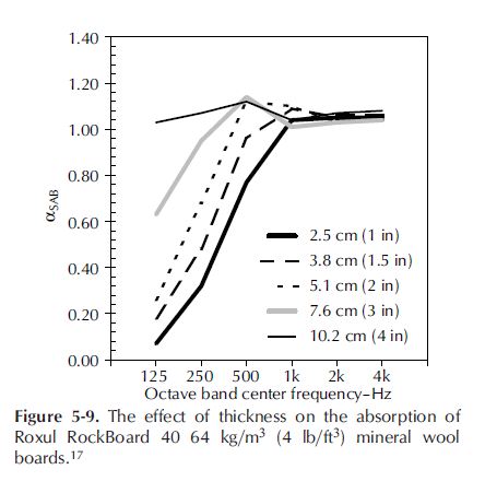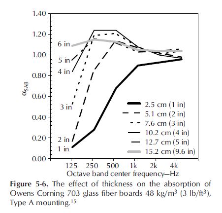 The absorption of the velour is greater when spaced from the wall, and the effect is