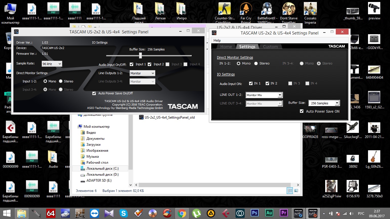 C Tascam никак не получается добиться того же эффекта. Внимательнейшим образом прочел инструкцию, выставил все настройки, как там указано - нифига. Даже убрал галки на "Монопольное использование аудиоустройства" в настройках звука в винде.