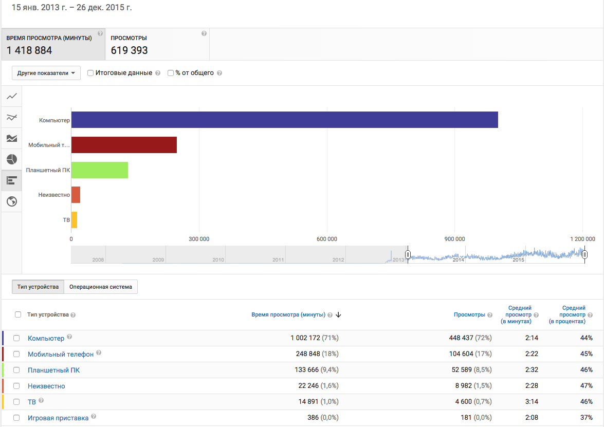 Из интереса таки решил глянуть на чем слушают музыку в США на примере своего "ютюб-канала".