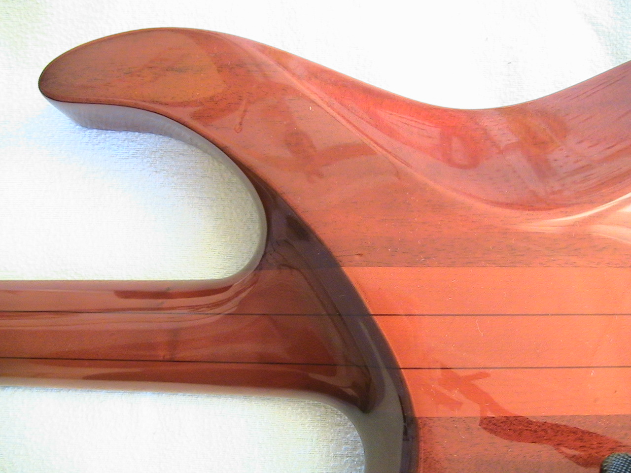 Корпус из махагона, сквозной гриф из клёна, накладка из чёрного дерева.