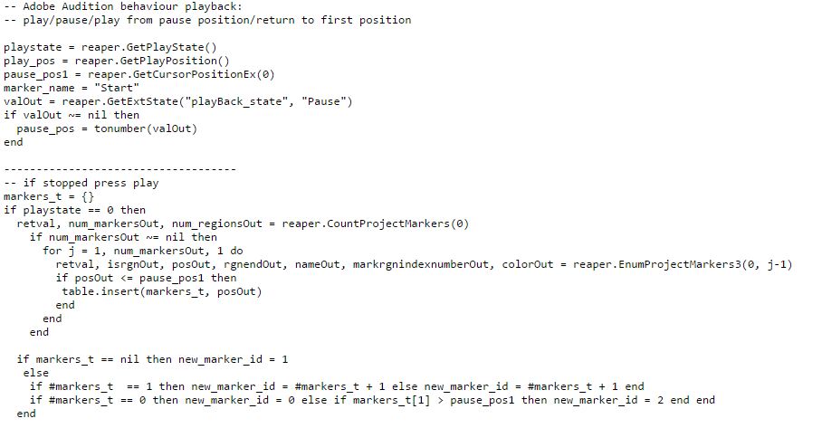 Немного разобрался. Вы мне послали Play-pause.lua, этот скрипт работает, проверил, но он уже есть среди стандартных Риперовских. Вы также мне послали Go to previous position.lua, назначил на него хоткей, Рипер при его нажатии пишет следующее