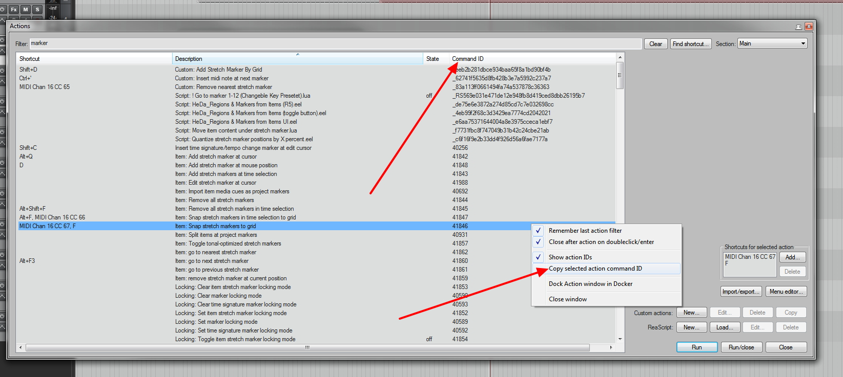 Где посмотреть/скопировать Command ID нужного экшна/кастома/скрипта: