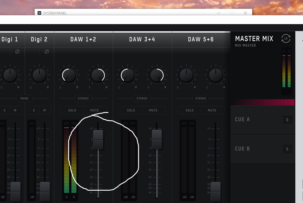 А почему так много? И зачем в микшере виндовс? Обычно хватает один-два децибелла придавить на самой карте, и "проблема" исчезает. Вот этим фейдером и понизьте, собсно, пока "перегруз" не пропадёт:
