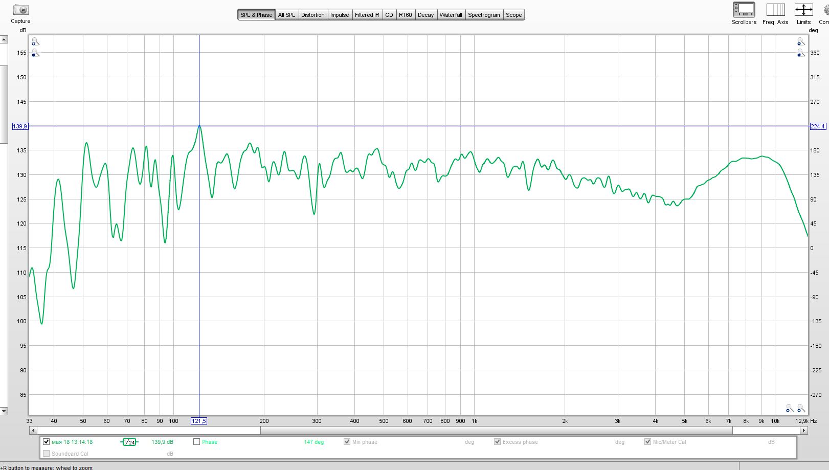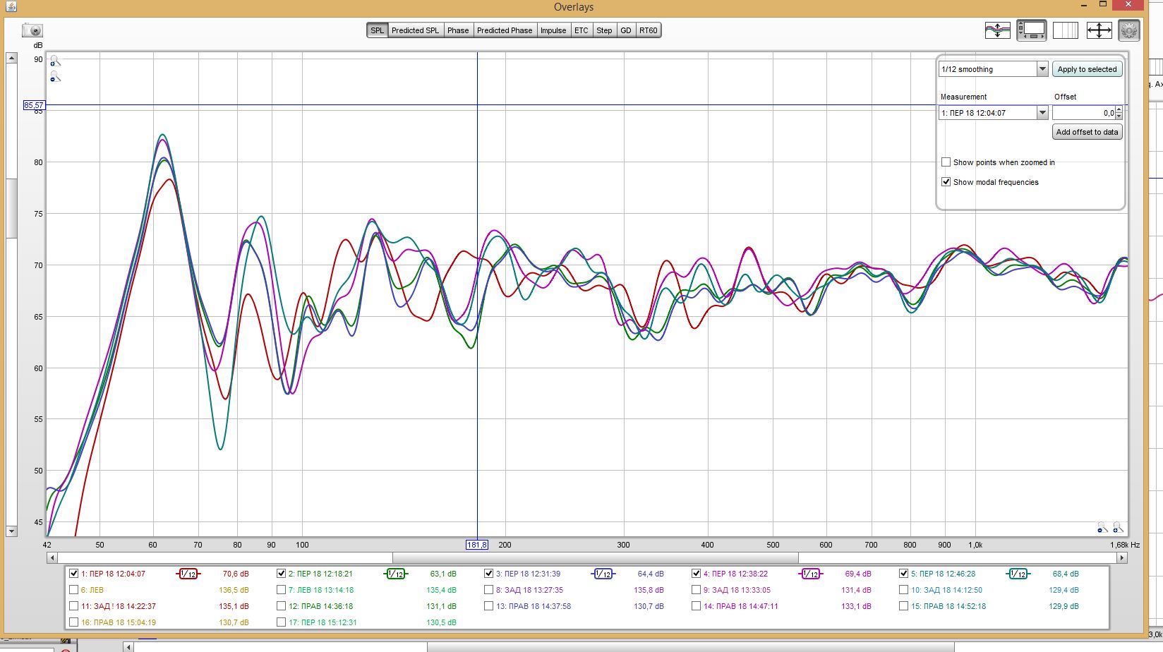 6. Здесь я двигал место вглубь комнаты от стены, каждый раз замерия ачх. На картинке сумма всех этих измерений со сглаживанием 1/12.