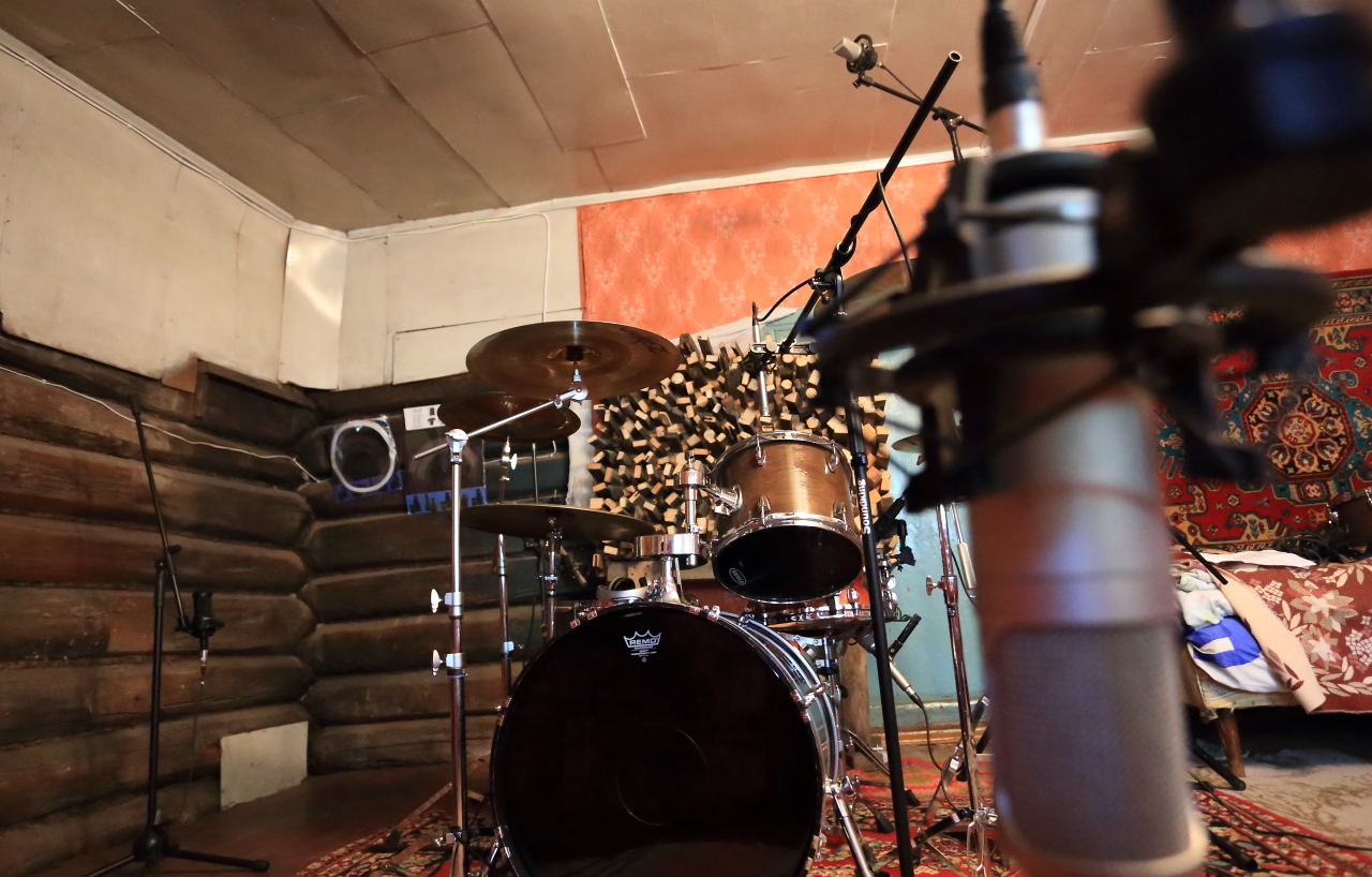 том,бас-том,room семь метров от центра малого барабана.