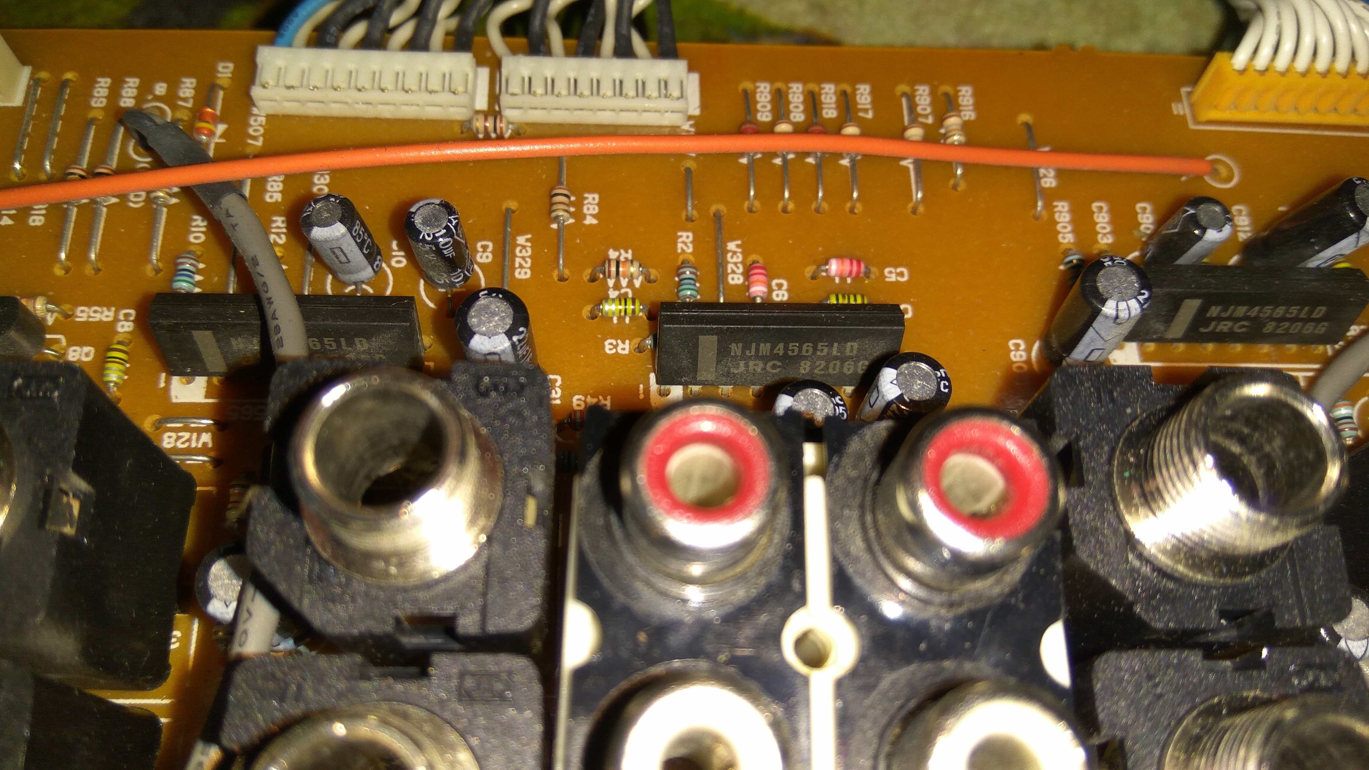 Очень похоже на то что защитные резисторы по входу отгорели. По "углю" обычно такой звук и получается.
