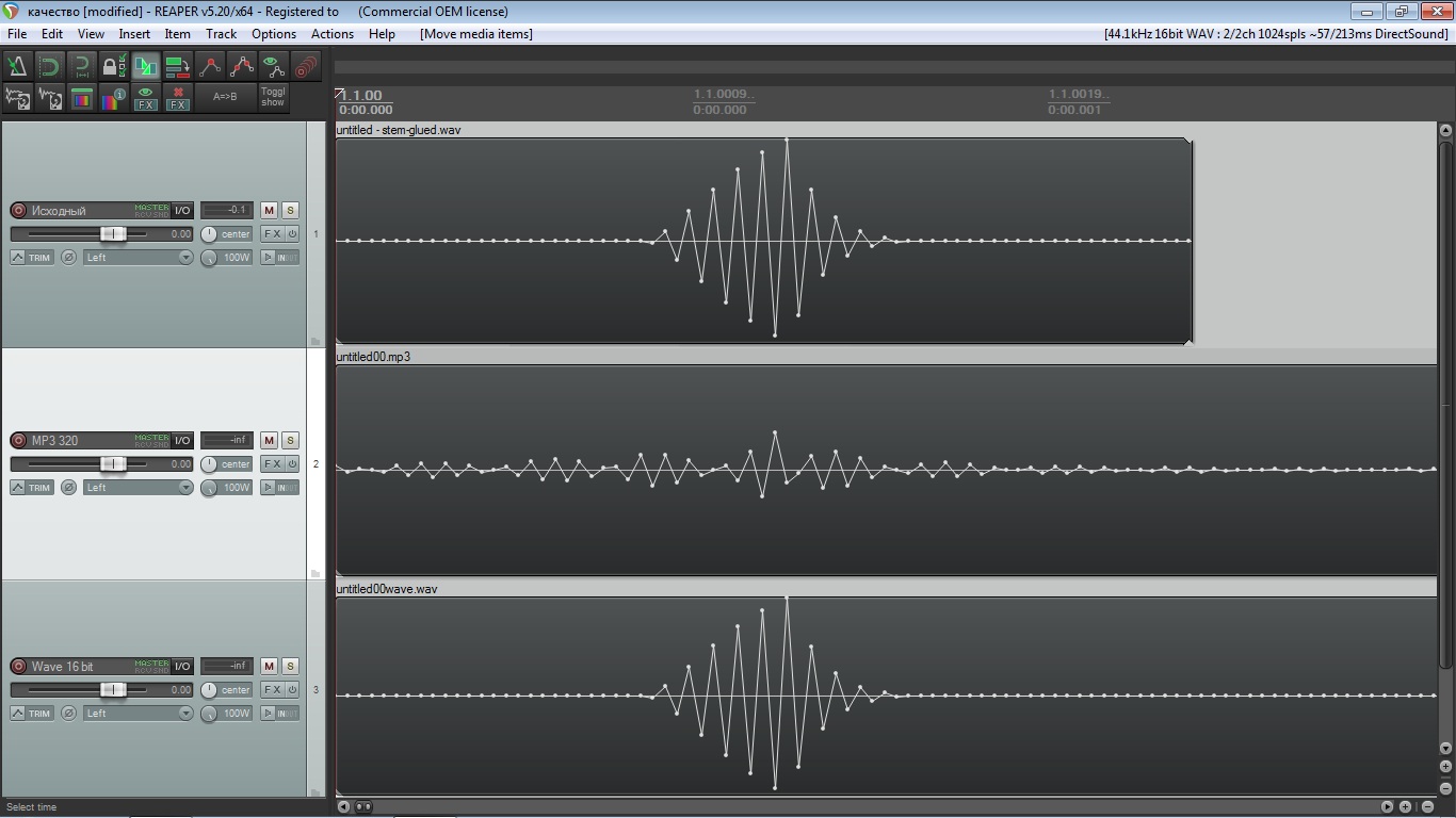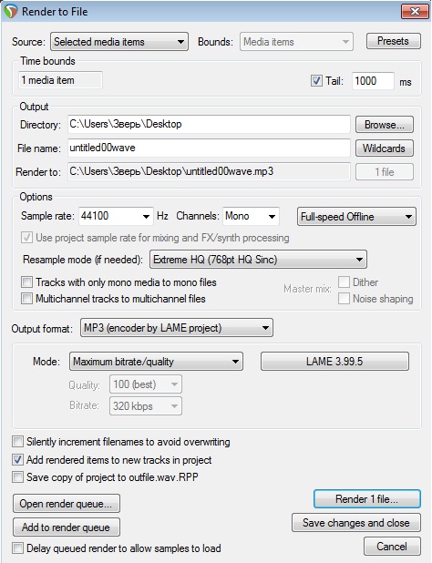 Всем здравствуйте! Сделал рендер короткого импульса в рипере в мп3 и его вид меня сильно удивил. пробовал с разными настройками, все одно - сильное искажение волны. Кто думает в чем дело? Прилагаю скрин с настройками рендера в мп3 и скрин с видом волн.