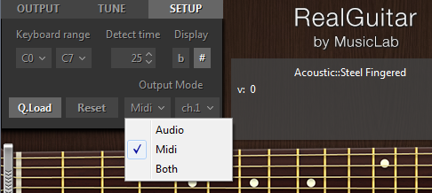 3. В самой Real Guitar в setup-е (вверху слева) выбрать в output mode - midi или both, но не audio.