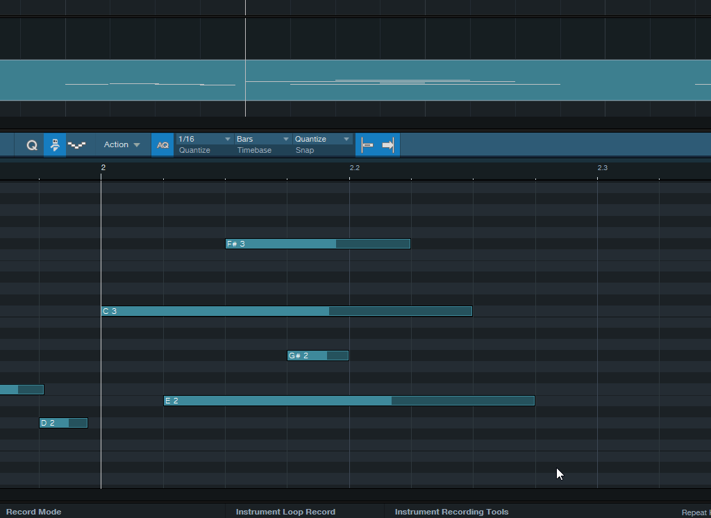 Использование доп. клавиш в MIDI-редакторе Studio One.