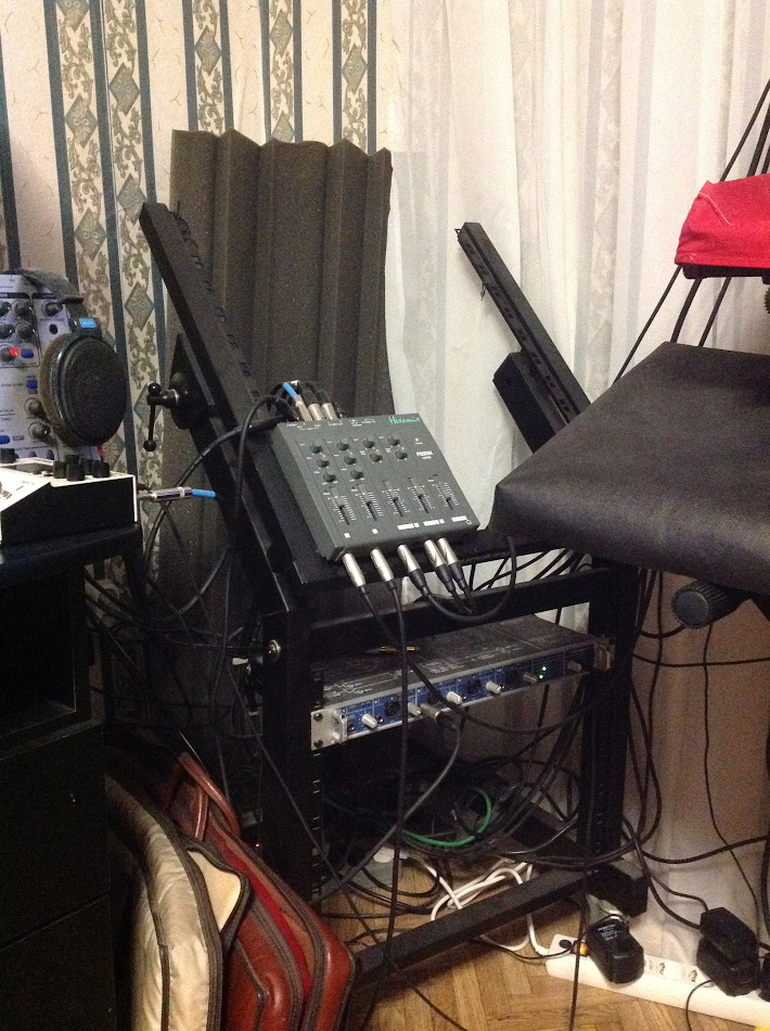 Как видно, сейчас у меня вообще вспомогательным микшером выступает Fostex MN-06 который я купил за 10 баксов )))))) Я мэки наверх воткну, а в фостекс крону воткну и заберу в машину играться Volca-ми на досуге ) А то сейчас там бардак из проводов.