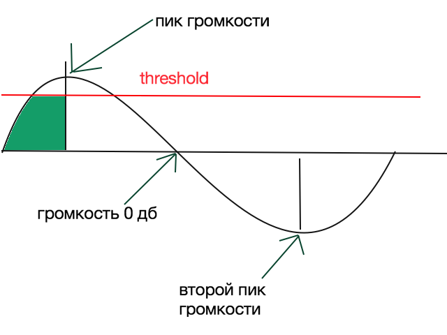 эта площадь зеленая на рисунке. каким образом компрессор вычисляет ее рмс