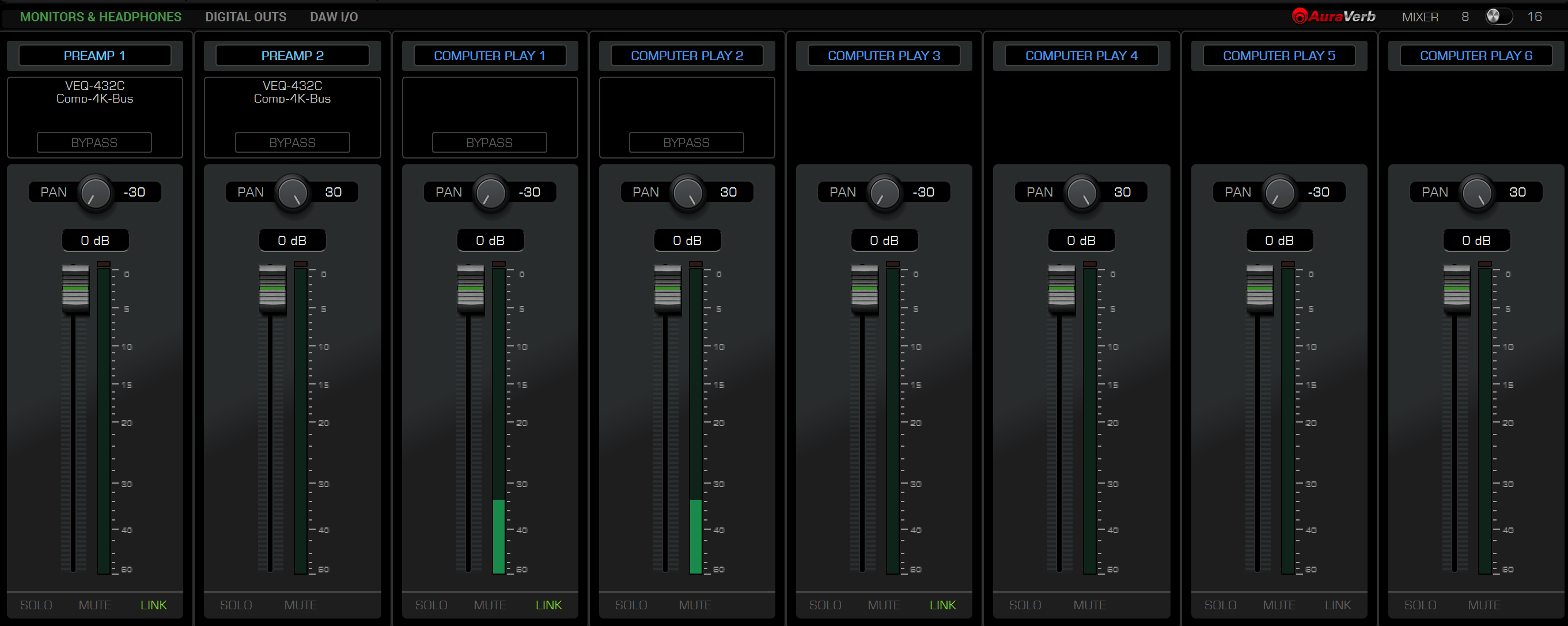 Например на 2 канала (Preamp 1 и 2) я повесил эффекты, но мне нужно в DAW добавить плагин и чтобы он был в цепи до этих эффектов.