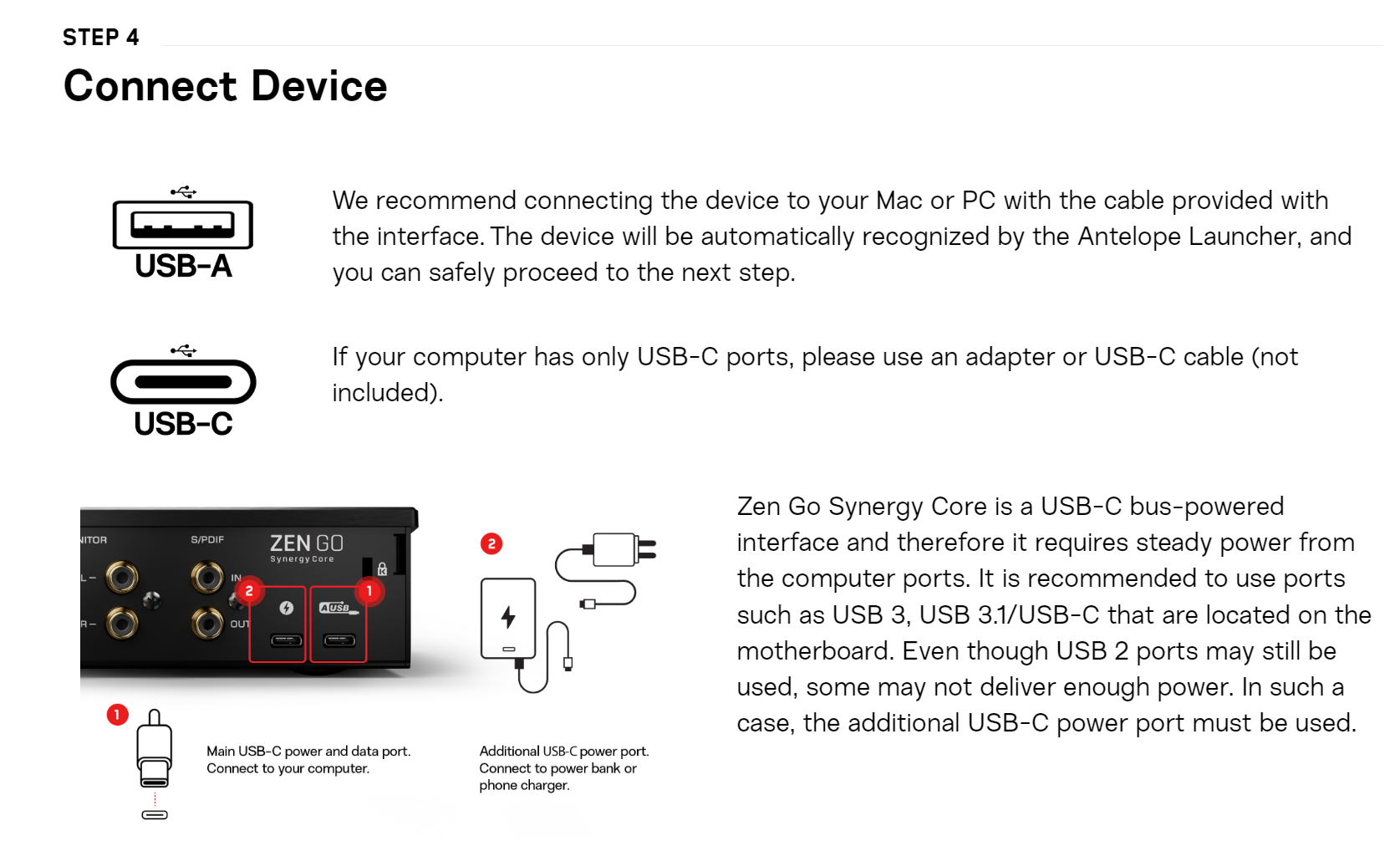 The Power USB-C port is a modern solution that turns the Zen Go Synergy Core into a truly mobile portable audio interface. It has the following applications: