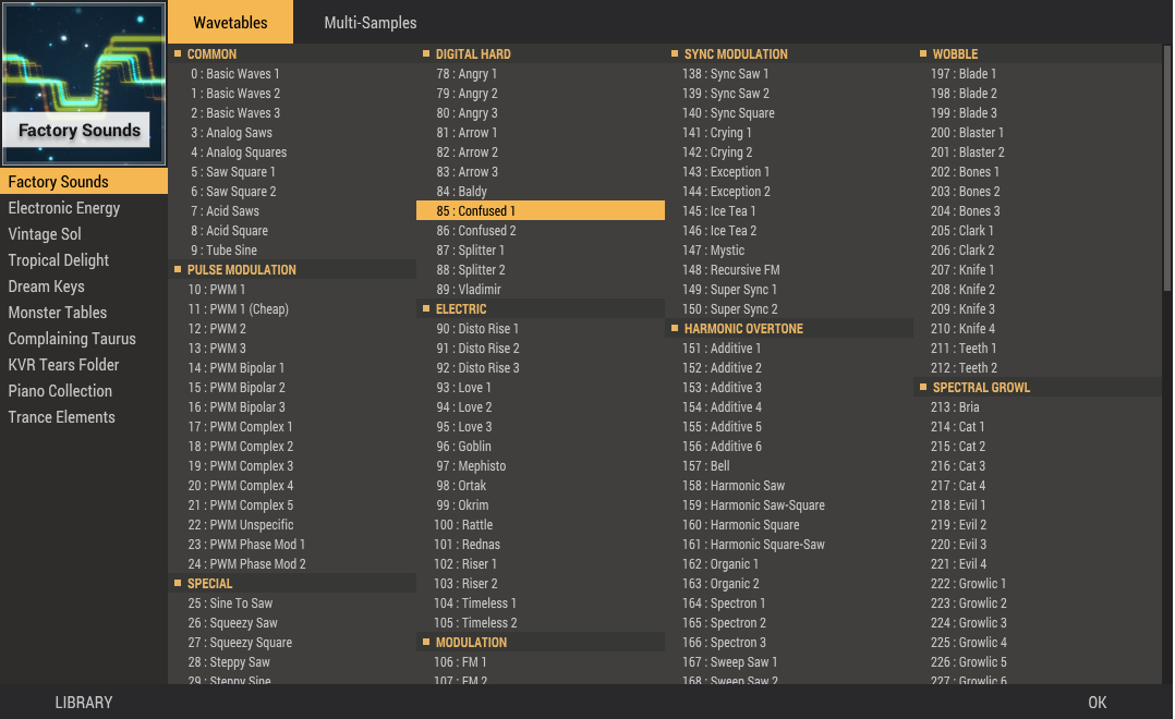 Addable are single- or multi-cylce wavetables with constant frame sizes (e.g. 2048 samples *cough* Serum *cough*). Internal re-sampling and stretching loads and plays all waveforms without aliasing. An optional "de-click frame" feature reduces unwanted buzz noises if realistic non-wavetable content is loaded. It's now an easy thing to import real instruments at e.g. C4 and re-sample it into a high quality RAPID wavetable.