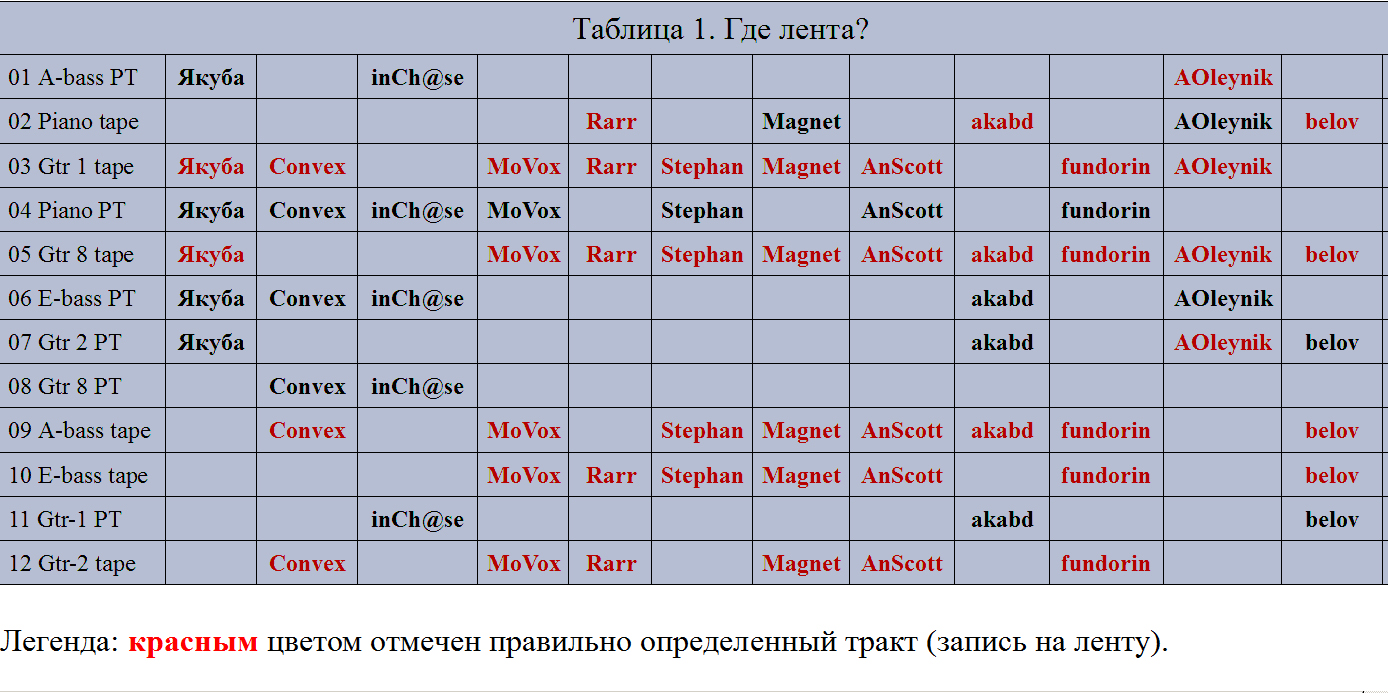 @iNcH@$e с абсолютной точностью разделил файлы, но... почему-то все записанное в DAW счел записанным на ленту. Сменил бы знак на противоположный - был бы в числе победителей викторины