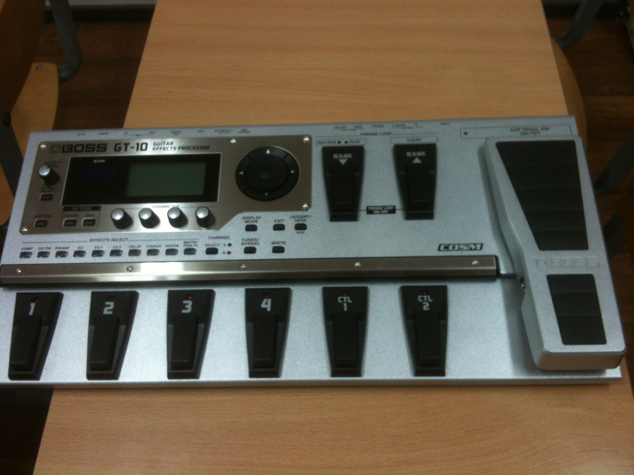 Boss GT-10 - это overdrive, compressor, delay, chorus, reverb и множество других высококачественных эффектов, возможность создавать свои собственные звуковые схемы, накладывать одновременно 2 эффекта (смешивая и нет), педаль экспрессии, выделение фрагментов, выбор наборов настроек, 4-позиционную навигационную кнопку, переключатель эффектов и 4 контроллера регулирования параметров этих эффектов, яркий LCD-дисплей и LED, выходные разъемы XLR и 1/4", а также возможность подключения по USB (MIDI через USB).