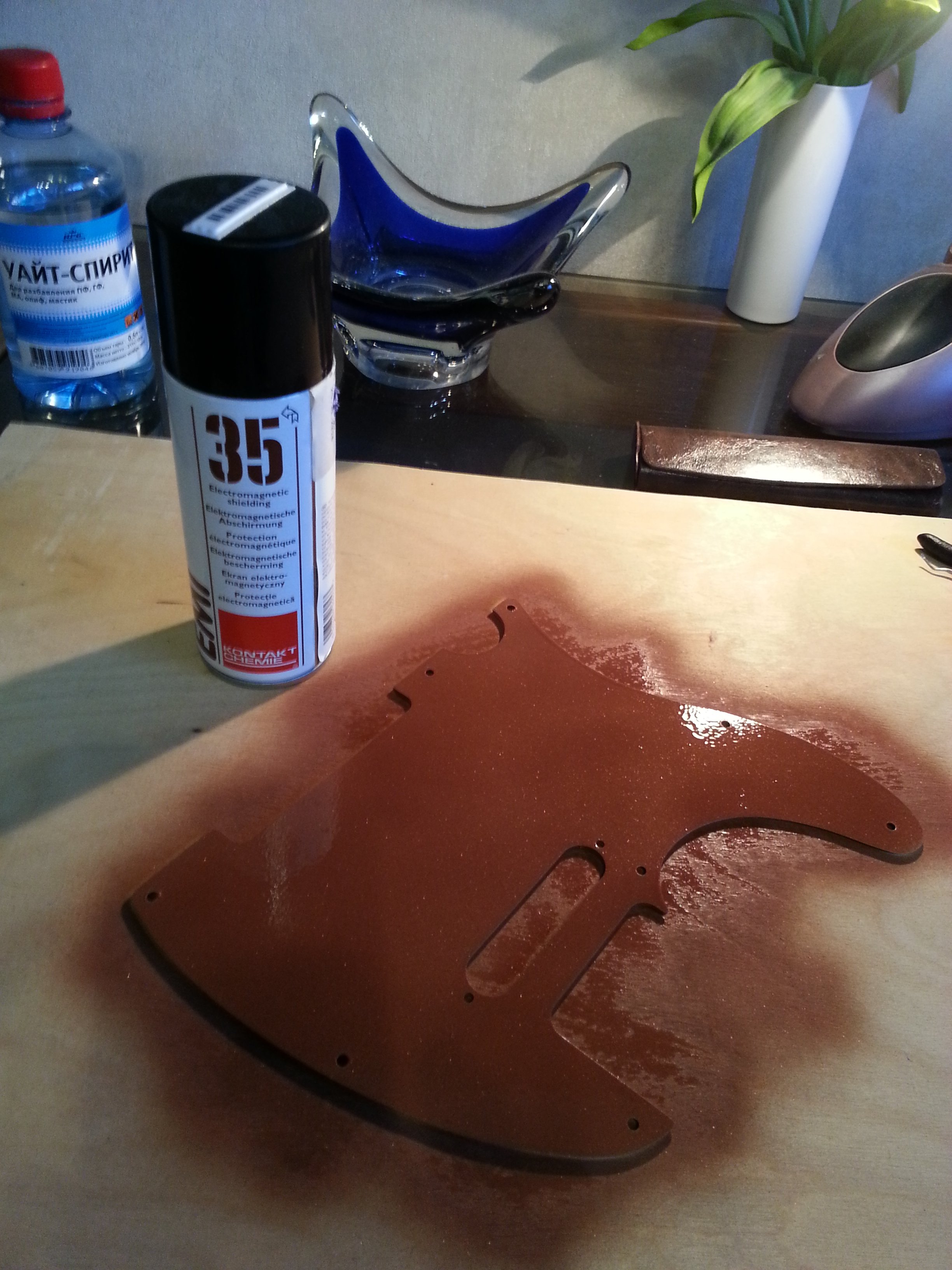 Обещал поделится результатом. В общем выбрал путь напыления EMI 35. Три слоя (через полчаса сушки под лампой) . На следующий день замерил во всех точках не больше 50 Ом "+/ - " 20 Ом. Запылил все тоннели. Немного модифицировал схему, посадив все земли в одну точку на громкости, туда же экран припаял. У меня была еще одна точка присоединения экрана , но я ее удалил. Больше "Радио России СПб" 66,3 МГц меня не достает, и шумов ЗНАЧИТЕЛЬНО меньше. Оказывается вещатели подавали заявку на увеличение мощности с 10 до 15 КВт (до меня 6 км), вот у меня и появился повод т.с. для сборки-разборки-настройки моего АК-74. Конечно не обошлось без косяка- тоннель к гнезду джека запылил, а сами сигнальные концы остались касаться стенок тоннеля (как сделал производитель на предыдущих фотках видно), ну и получил по полной -звук еле-еле пробивался. Изолир:Dвал всё встало по-местам .