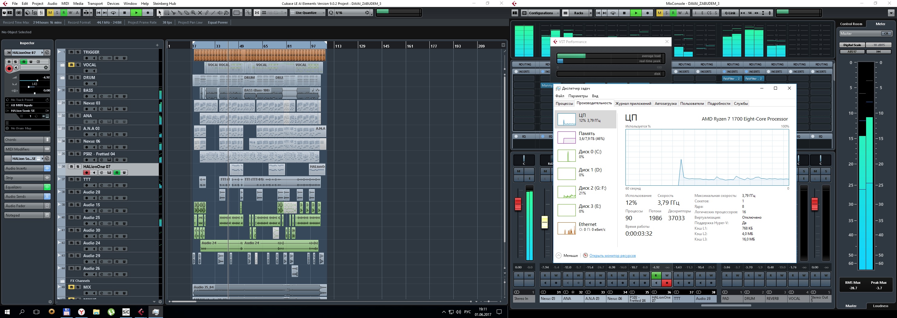 В инете до сих пор периодически всплывают мессаги, типа, райзен еще сырой, нужно ждать зен+, в котором пофиксят все баги... Но, блин, я реально не ощущаю ни сырости, ни багов. Платформа работает как часы, без каких либо закидонов, как будто ей уже лет десять. Причем, винду я даже не переустанавливал. Из игр погонял Battlefield 1 и Far Cry Primal - прет дуром. Секвенсор - куб 8 (не лиц). Ну тут, к сожалению, мало чего могу сказать. Проекты у меня все легкие, да и музыкой я уже практически не занимаюсь. Так, включаю для разнообразия. Но за все время так же ни одного вылета. Визуально по индикатору загрузки проца (в самом кубе) разницы с феном 2 х2 не заметил) Не знаю, может чего настраивать надо...