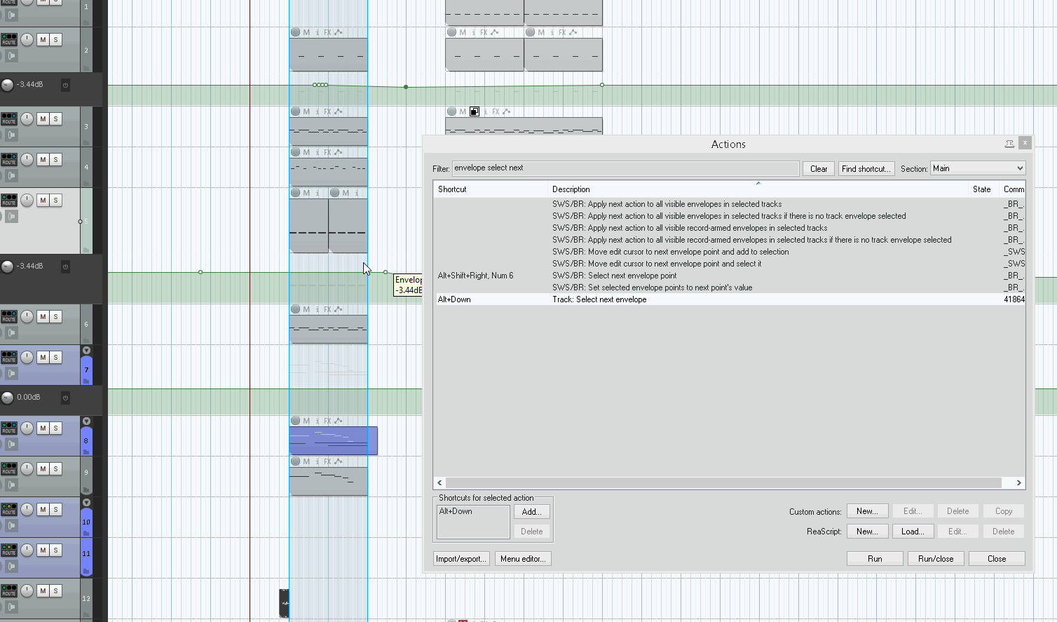 Кстати Track: Select next envelope тот еще квест)