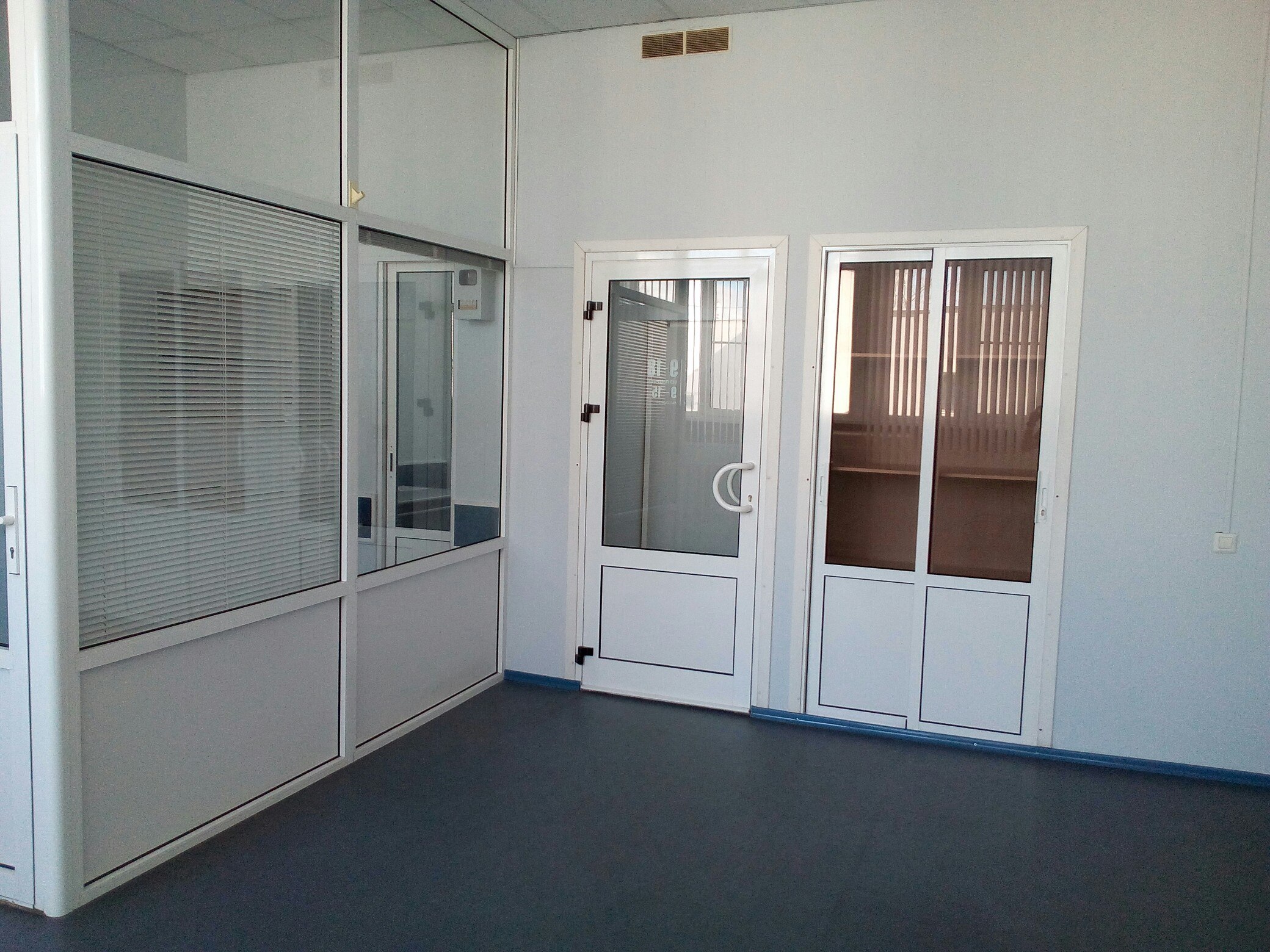 Две двери, первая тяжелая металлическая, вторая с хорошим стеклопакетом. Звуки из коридора глушат отлично.