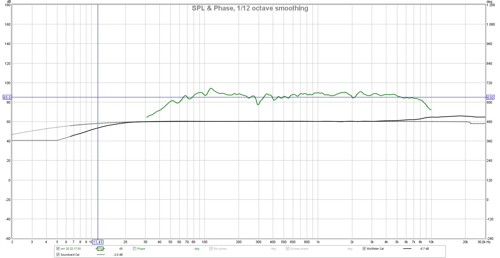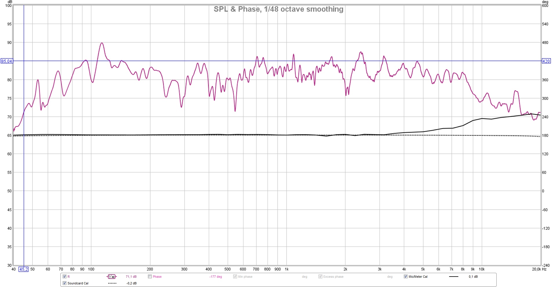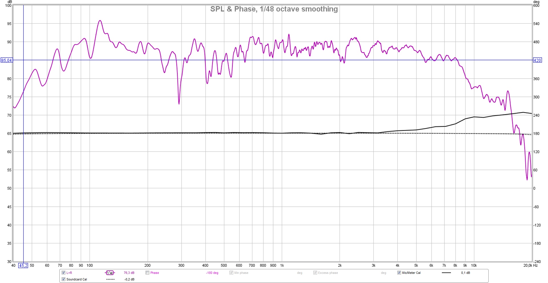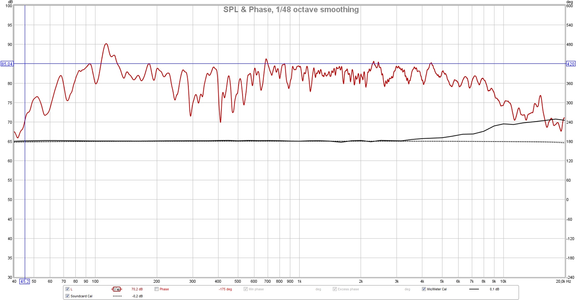 @parazolik, а можо размер окна 40hz-20khz по горизонтали? И шаг, что бы был 5db по вертикали (от 30 до 100db допустим)? Сглаживания хотя бы 1/48.