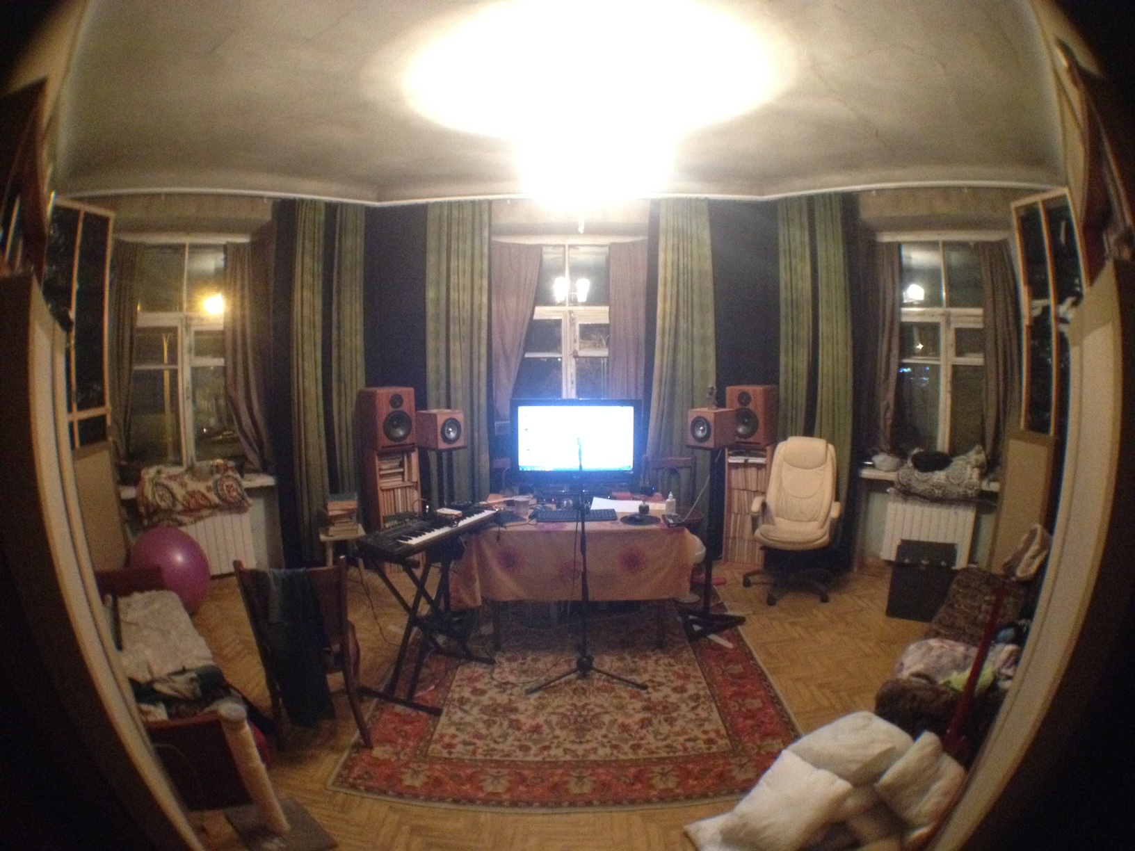Недавно запилил суперчанки,освободил центральное окно,ибо в темноте сидеть надоело,да и боковые впридачу - стало только лучше!Мониторы двигал вплоть до центра комнаты - и вот хоть УБЕЙ -найденное положение получилось наилучшее по балансу частот.Во всяком случае так REW выдает.Хоть и неидельный равносторонний треугольник.