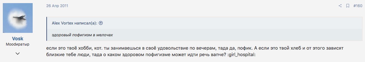 Лет восемь назад под ником Vosk скрывался другой человек, девиз в подписи которого гласил о том, что всё кроется в мелочах.
