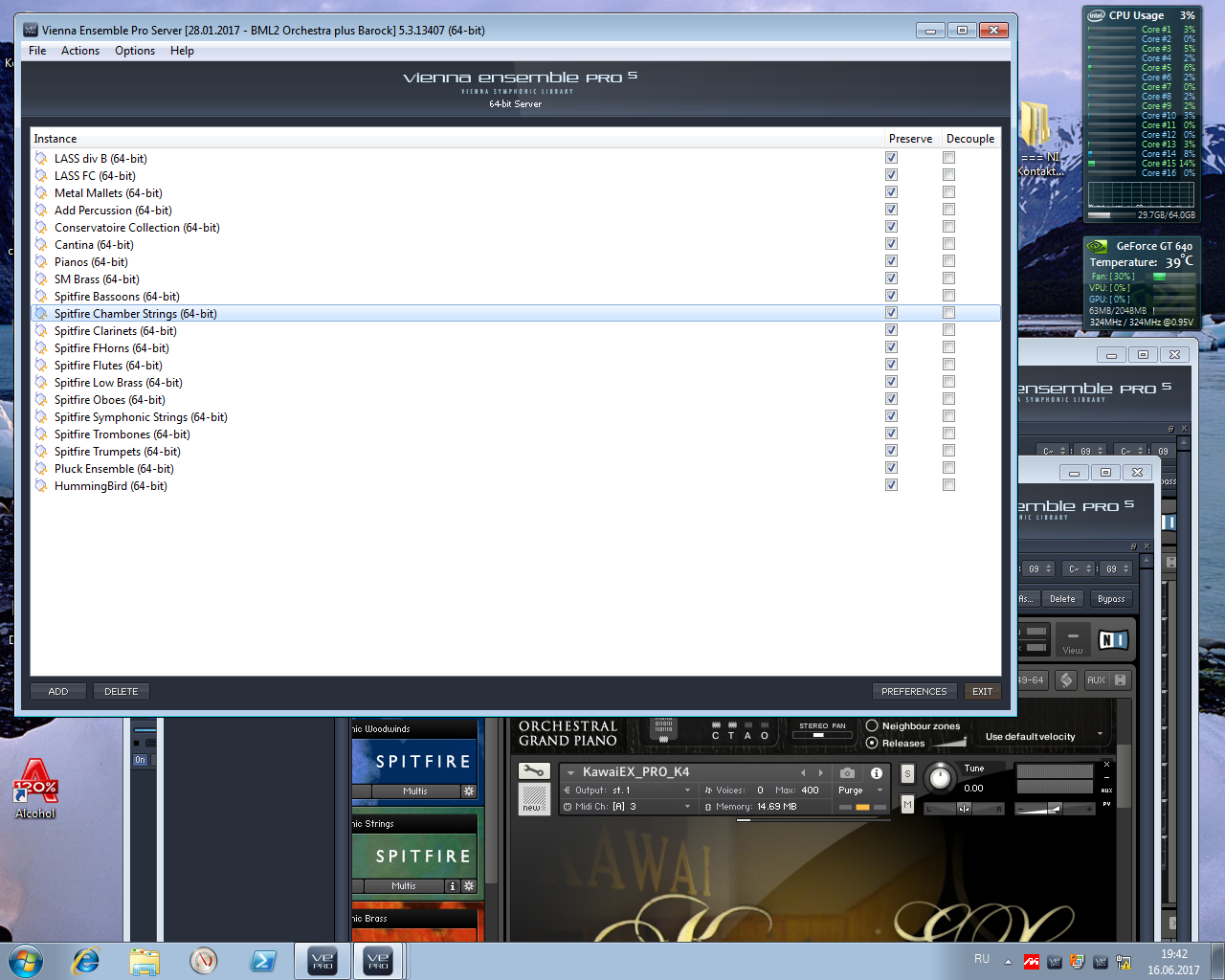- 3. аналогичный второму тест, только все lush работают через Vienna Ensemble Pro 5